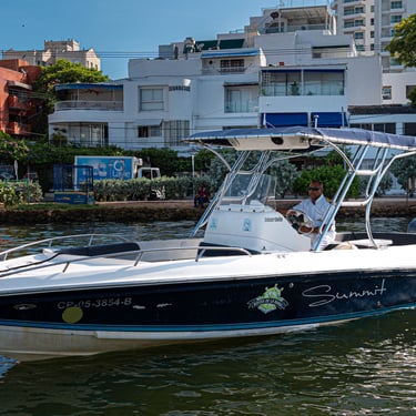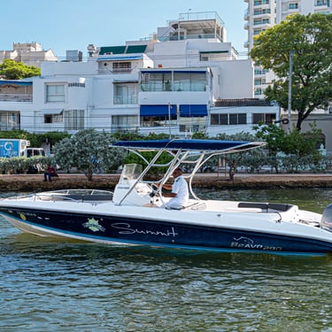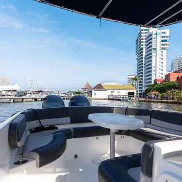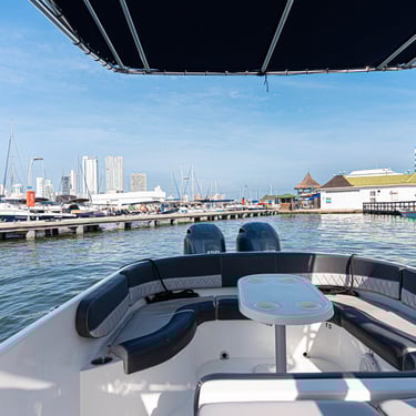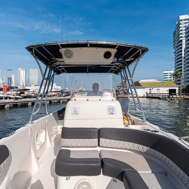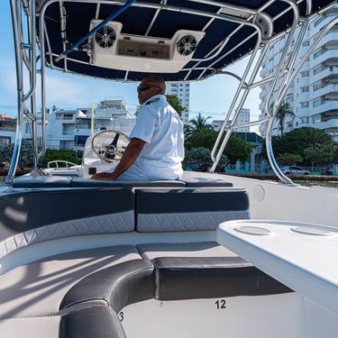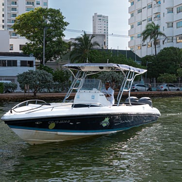 Disfruta la navegación en un bote de 29 ft equipado con dos motores Yamaha de 150 HP, ideal para combinar potencia y comodidad en el mar. Con capacidad para hasta 10 personas, este bote está diseñado para compartir momentos únicos con familiares y amigos. A bordo encontrarás un sistema de sonido puerto USB y Bluetooth, ducha de agua dulce y cava con hielo , además de una cómoda cojinería en cuero tanto en proa como en popa, creando un ambiente elegante y relajado. Para mayor practicidad, cuenta con mesa para bebidas y comestibles, perfecta para acompañar la experiencia con un toque de confort.