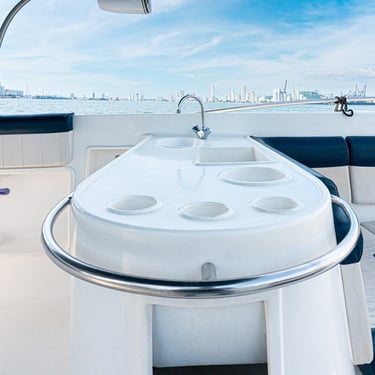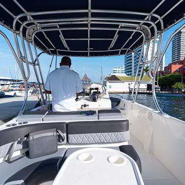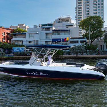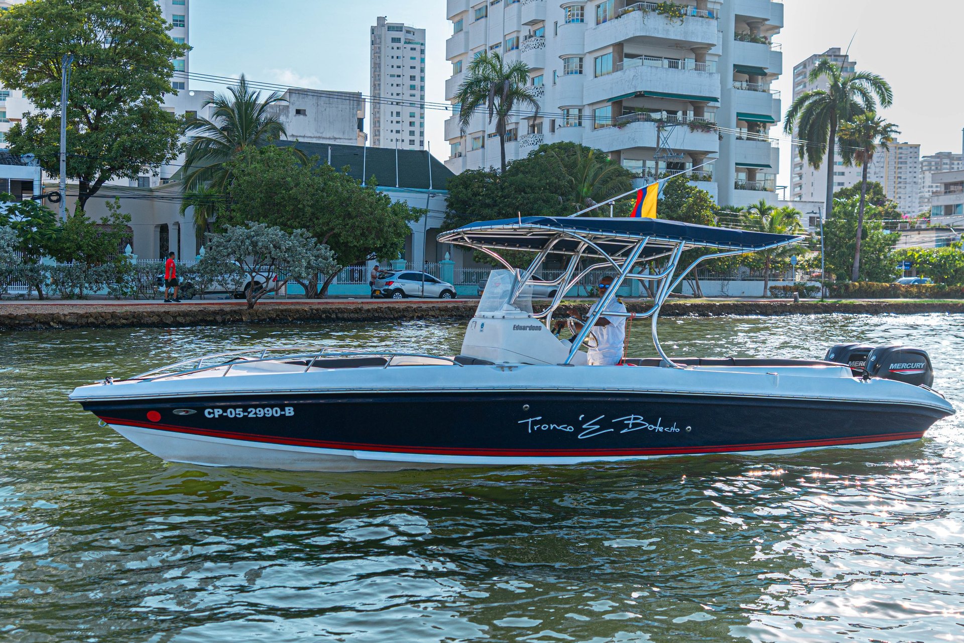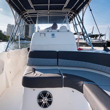 Navega en el Bravo 290 de 29 ft , con dos motores Mercurri 115 HP y capacidad para 8 pasajeros. Con escalera para ascender y descender del bote. Disfruta de sonido con Bluetooth y USB, lavamanos, ducha de agua dulce, cava con hielo, mesa y una cómoda cojinería de cuero en proa y popa, perfecta para vivir el mar con estilo y confort.